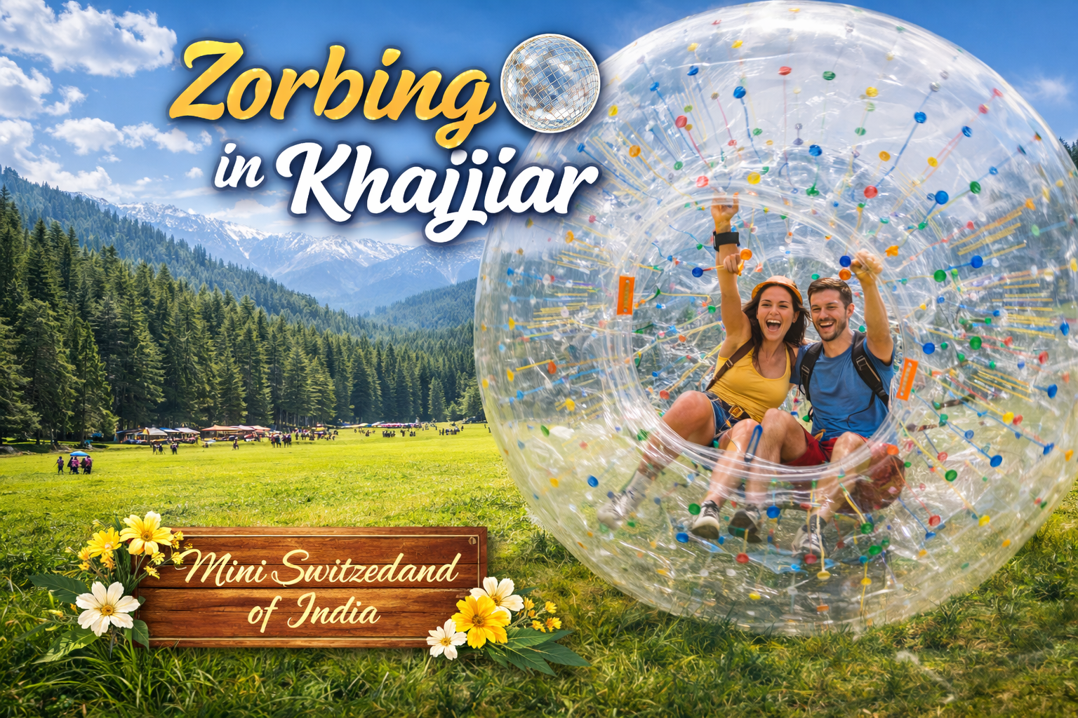 Get ready for pure fun with an exciting 5-minute zorbing experience in Khajjiar, the “Mini Switzerland of India.” Roll down the lush green meadows inside a giant transparent zorb ball while enjoying stunning views of pine forests and the surrounding Himalayan landscape. Safe, thrilling, and full of laughter, this short adventure is perfect for friends, families, and anyone looking to add a unique and playful activity to their Khajjiar trip.